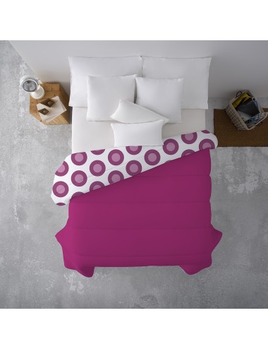 Edredón nórdico REVERSIBLE malva liso por un lado y estampado por otro de 300gr. de fibra hueca siliconada ultraligera y tacto pluma. Nivel térmico medio-alto. Las propiedades más destacadas de esta prenda son: su poder Anti-bacterias, Anti-ácaros, Anti-humedades y Transpirable.