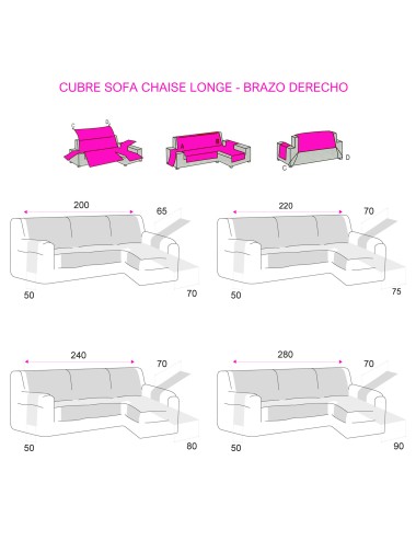 Cubre Sofá Acolchado para Chaise Longue MAU Beige brazo derecho. Varias medidas disponibles. |