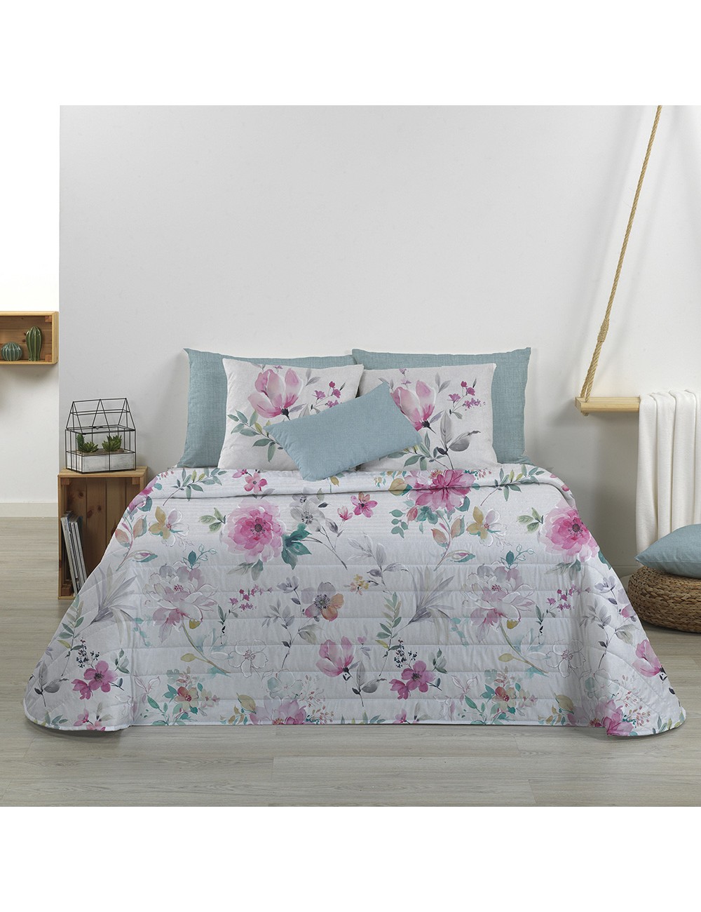 Colcha Bouti Flores rosa. Tejido exterior 100% microfibra y relleno 100% poliéster 100 gr.