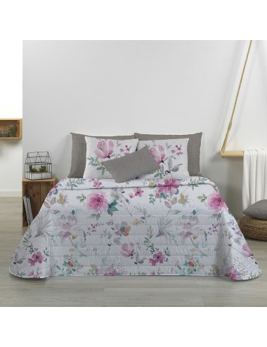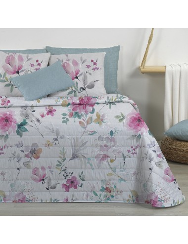 Colcha Bouti Flores rosa. Tejido exterior 100% microfibra y relleno 100% poliéster 100 gr. |