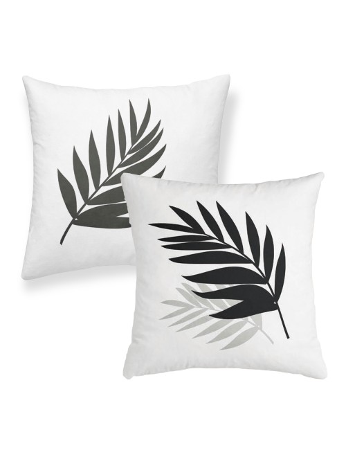 Pack 2 fundas de cojín decorativo HOJAS negro/gris 50x50 cm