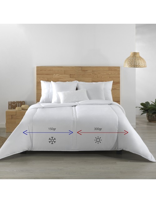 Edredón nórdico de 300gr. de fibras ultraligeras y tacto pluma que aportan gran volumen y aseguran una excelente circulación del aire, reduciendo la aparición de humedad.