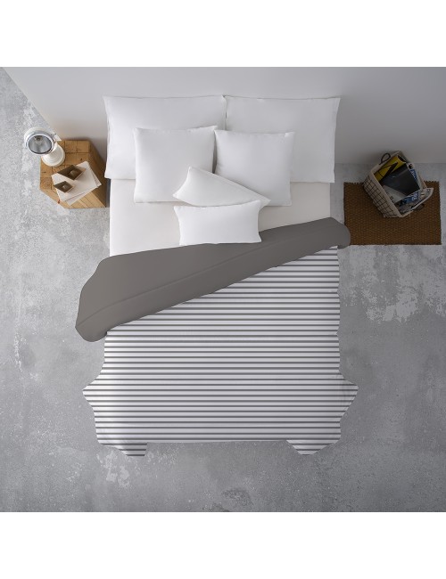 Edredón nórdico REVERSIBLE gris de 300gr. de fibra hueca siliconada ultraligera y tacto pluma. Nivel térmico medio-alto. Las propiedades más destacadas de esta prenda son: su poder Anti-bacterias, Anti-ácaros, Anti-humedades y Transpirable.